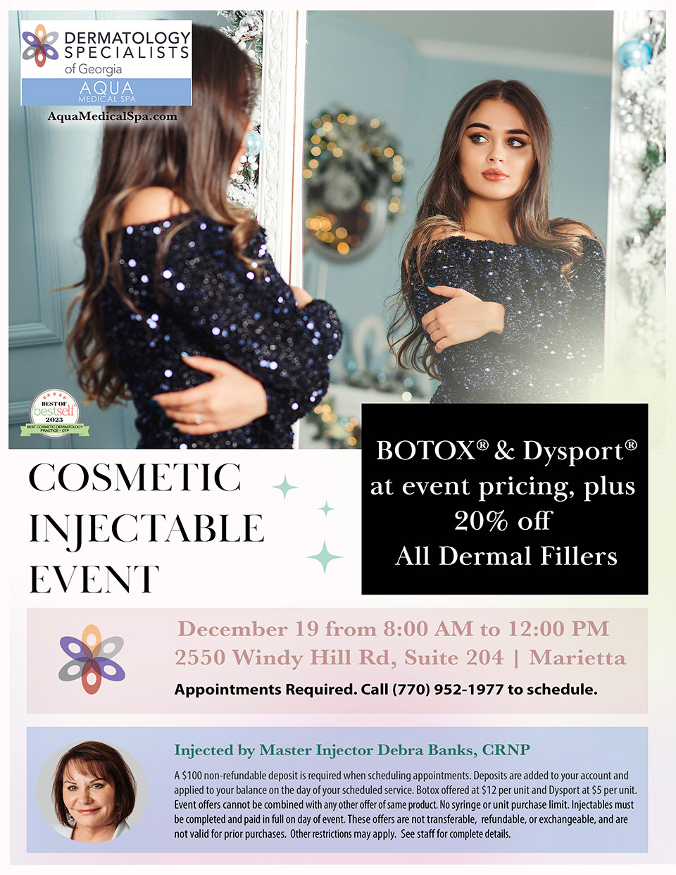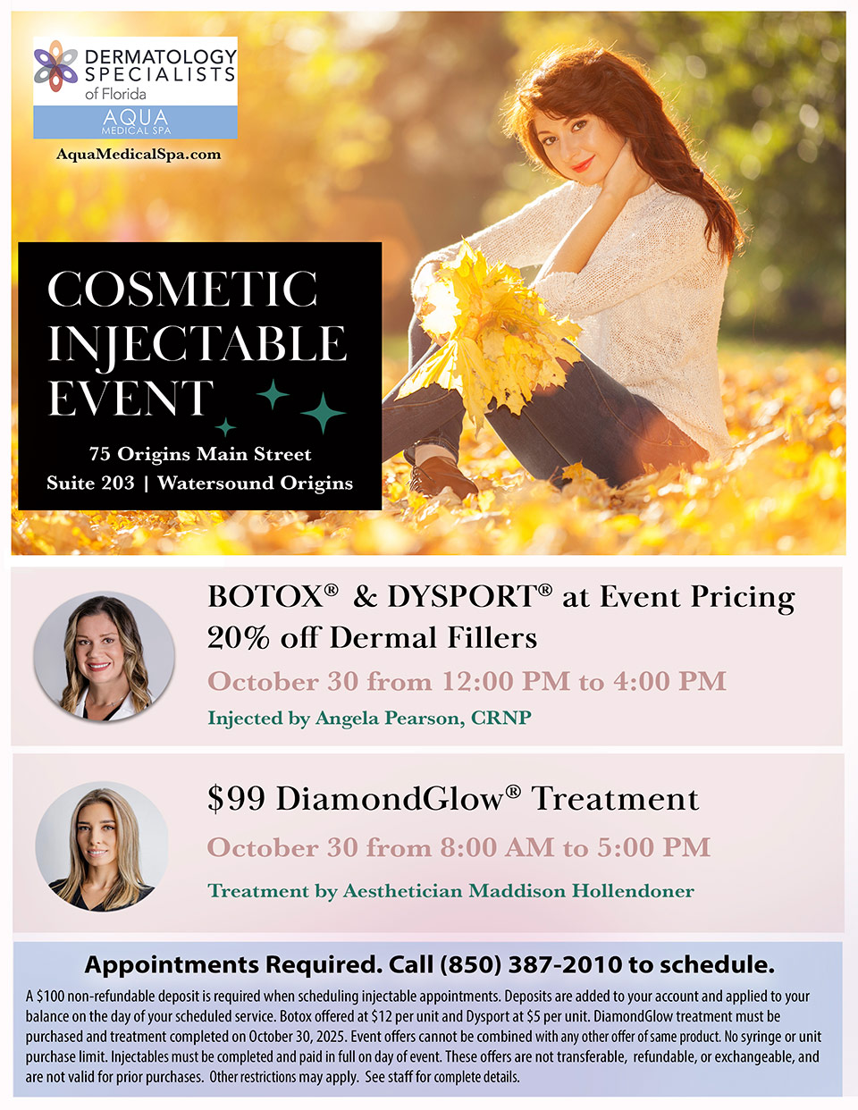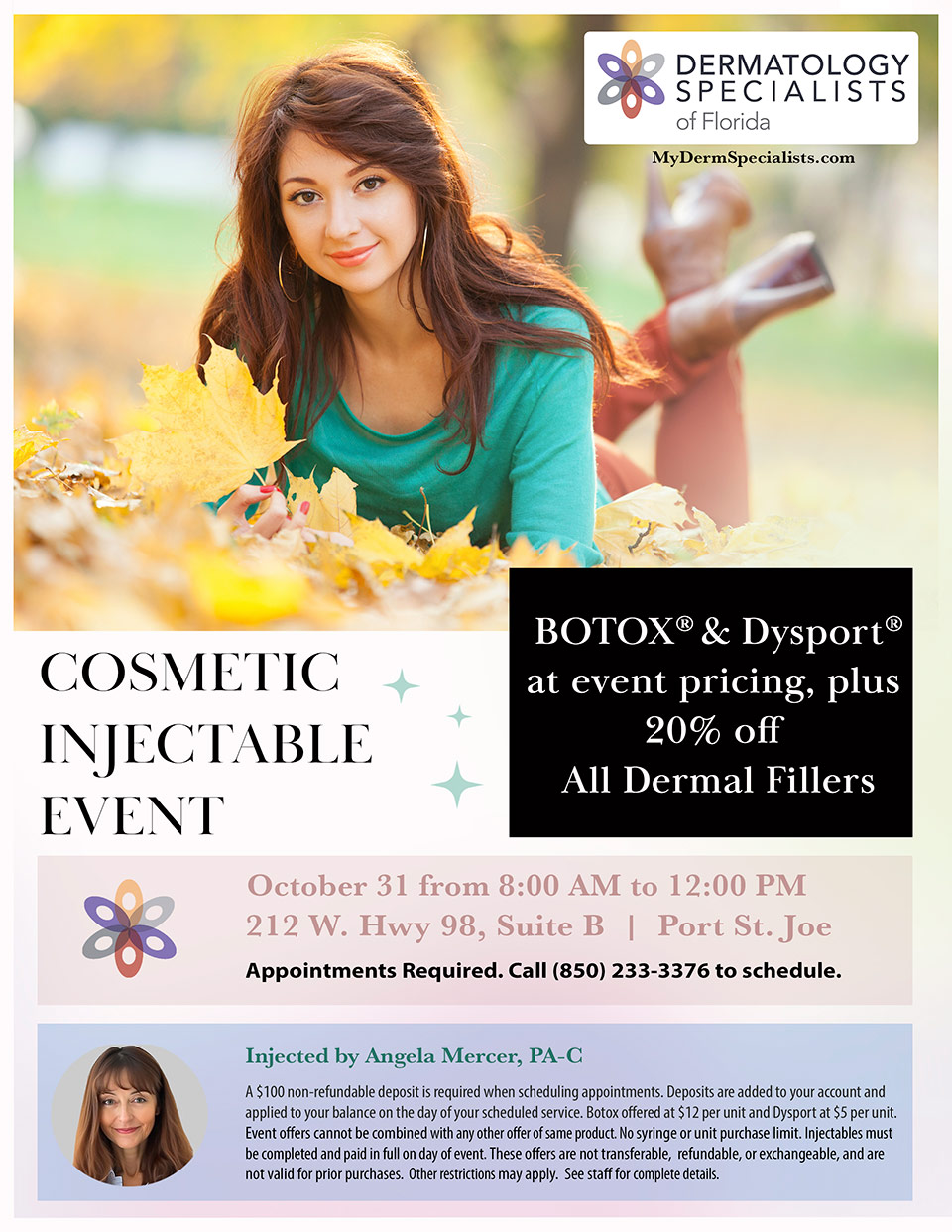We invite you to check out this months special offers and events designed to help revive, rejuvenate and restore your skin. And, if you’re our Facebook friend you’ll have access to other exclusive offers just for you. To learn more or to reserve your space at an event, contact us today at 877-231-DERM (3376). We hope to see you soon!