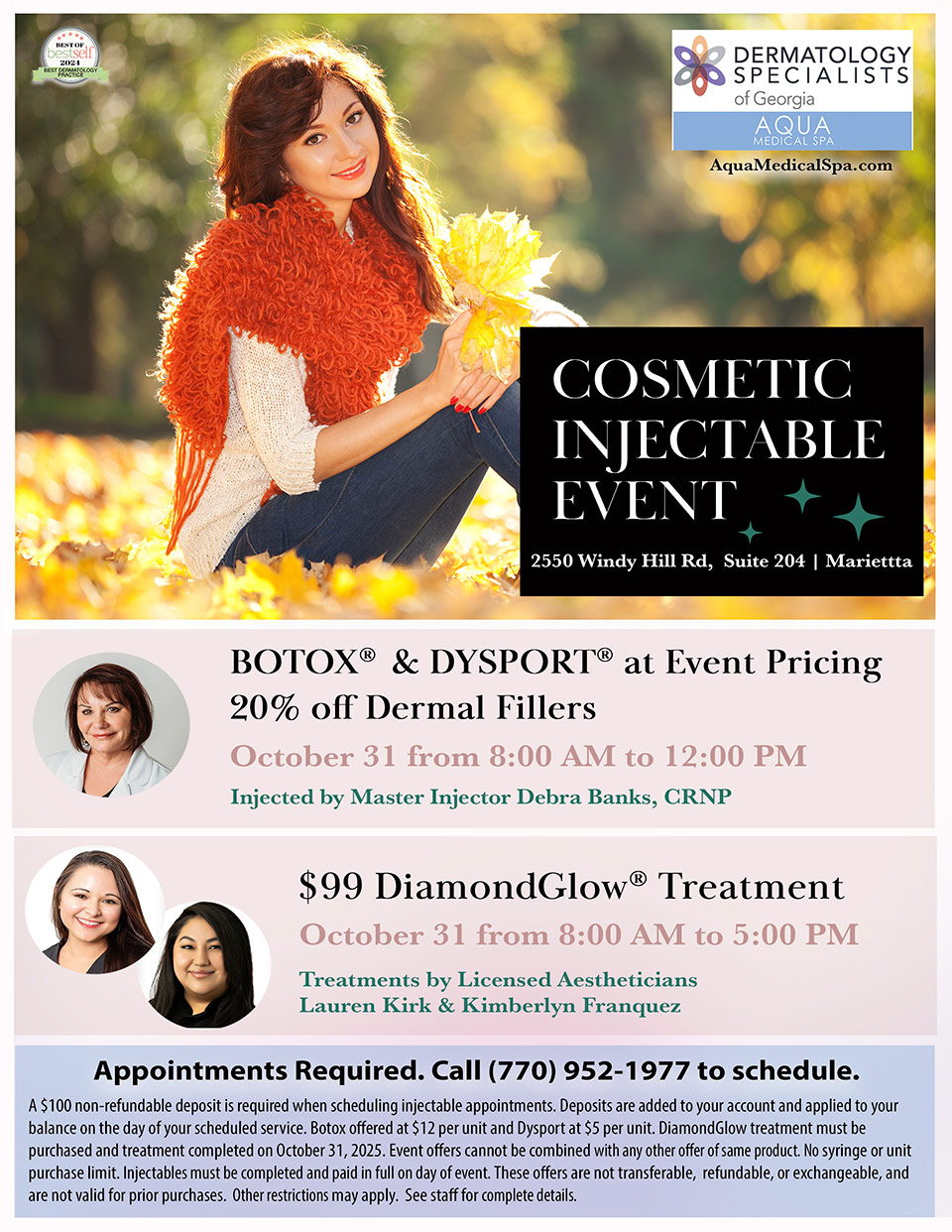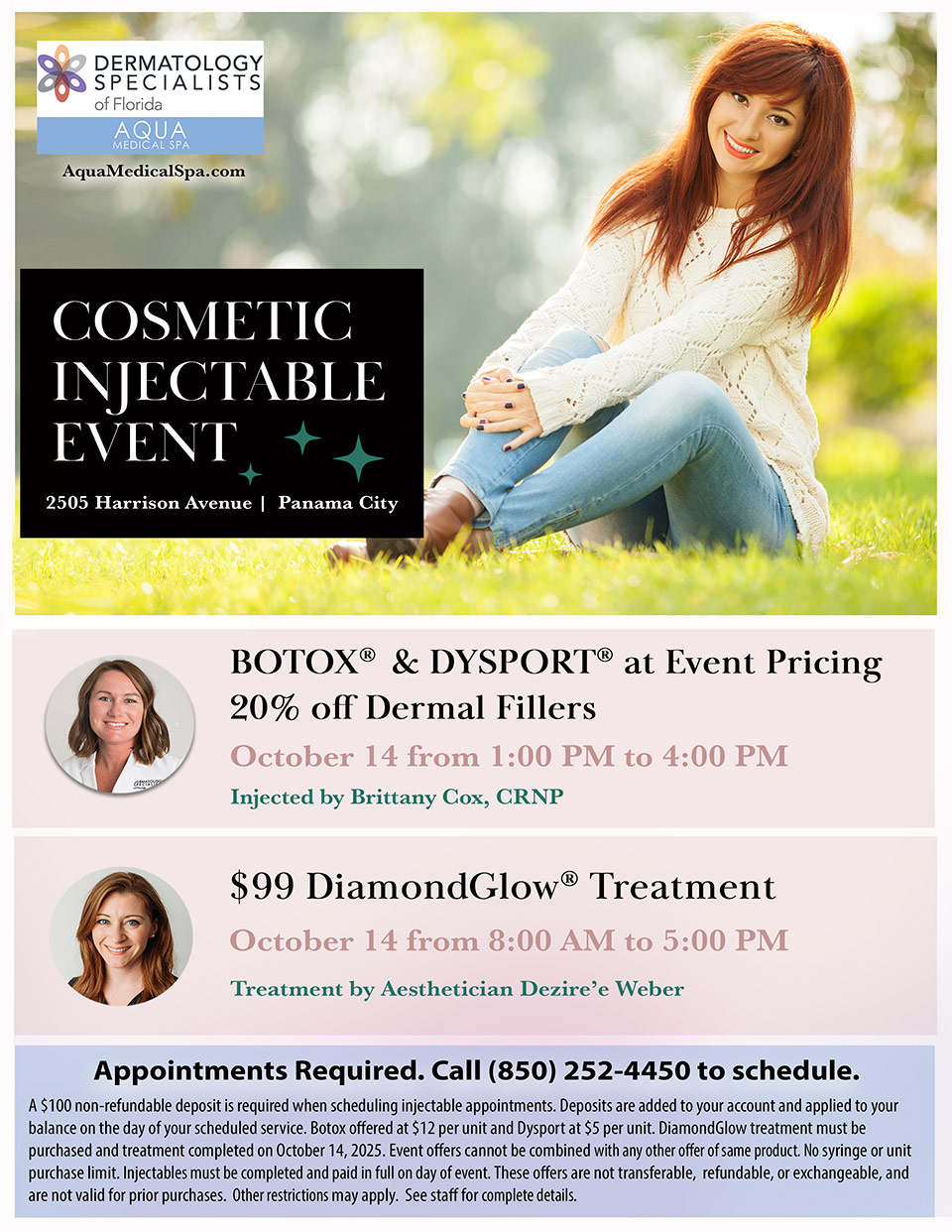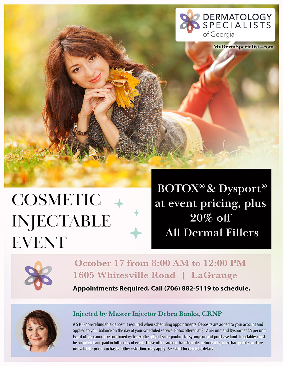 We invite you to check out this months special offers and events designed to help revive, rejuvenate and restore your skin. And, if you’re our Facebook friend you’ll have access to other exclusive offers just for you. To learn more or to reserve your space at an event, contact us today at 877-231-DERM (3376). We hope to see you soon!